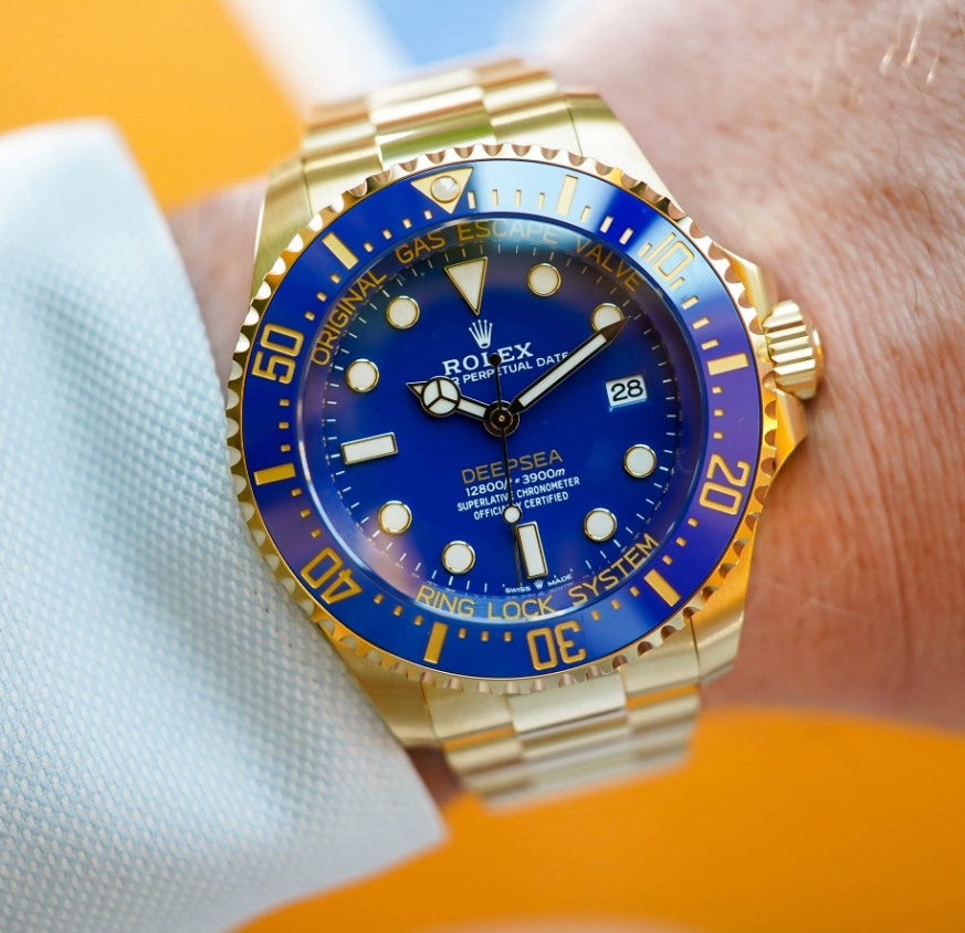 Back in April, the Rolex Deepsea 136668LB was one of the most talked about watches of Watches & Wonders. The Deepsea has always been Rolex’s biggest and boldest dive watch (until the 50mm wide Deepsea Challenge 126067 came along that is, but we’ll ignore that for now). It takes the iconic design codes of the Submariner and beefs it up to 3,900m of water resistance. So why all the buzz then? Well, because contrary to before, Rolex made it out of solid 18k yellow gold and essentially created a proper diving weight for the wrist! After some months to reflect, I thought it was time to try and wrap my head around this 320-gram behemoth of Rolex replica watches UK.